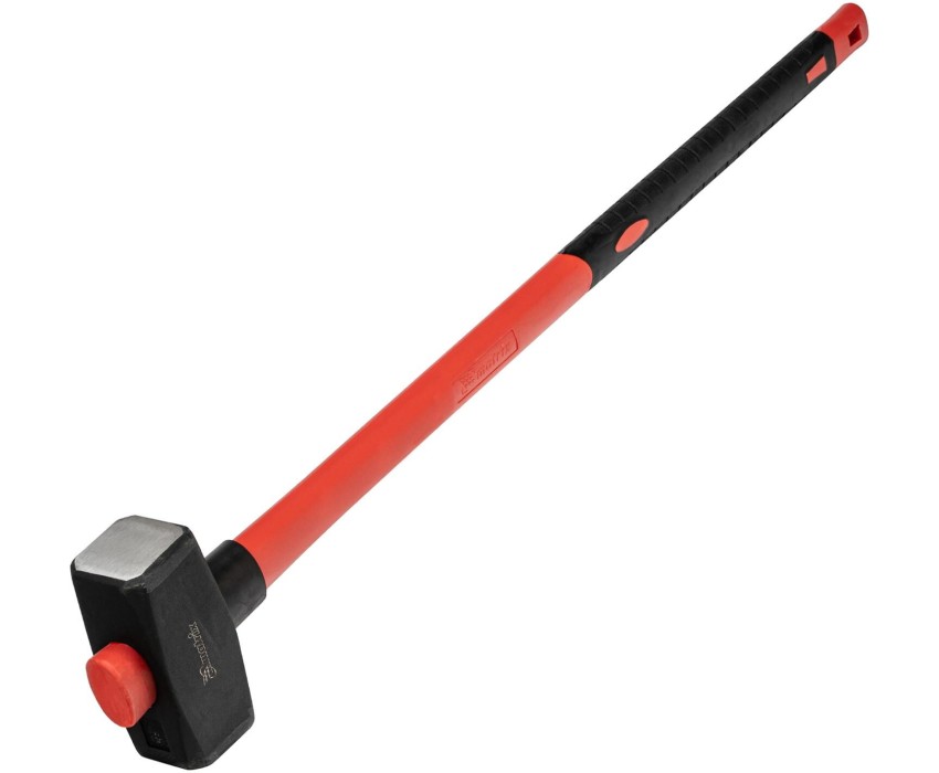 Кувалда Matrix 10923 длиной 900 мм, с бойком весом 4000 г и фибергласовой обрезиненной рукояткой, предназначена для демонтажных работ — разрушения камня, кирпича, бетона. Также может использоваться для правки автомобильных дисков и сборочных работ. Удлиненная рукоятка позволяет наносить удары большой силы, а кованый боек отличается прочностью и не подвержен деформациям. Кувалда рекомендована для профессионального применения. Преимущества Оптимальное соотношение твердости и прочности — голова кувалды изготовлена из высококачественной среднеуглеродистой стали 45, а ударные поверхности прошли закалку токами высокой частоты до 40-45 HRC, поэтому боек не расколется и не расплющится от ударов. Долгий срок службы — поверхность головы покрыта черным лаком для защиты от коррозии. Надежная фиксация бойка — рукоятка вставлена на протяг и снабжена страховочной резинкой. Безопасная работа — благодаря снятым фаскам от бойка не отколются мелкие частицы во время удара. Надежность и низкая отдача — пластиковая рукоятка имеет толстый фибергласовый стержень. Удобный захват — благодаря резиновому рифленому покрытию рукоятка не выскальзывает из ладони.