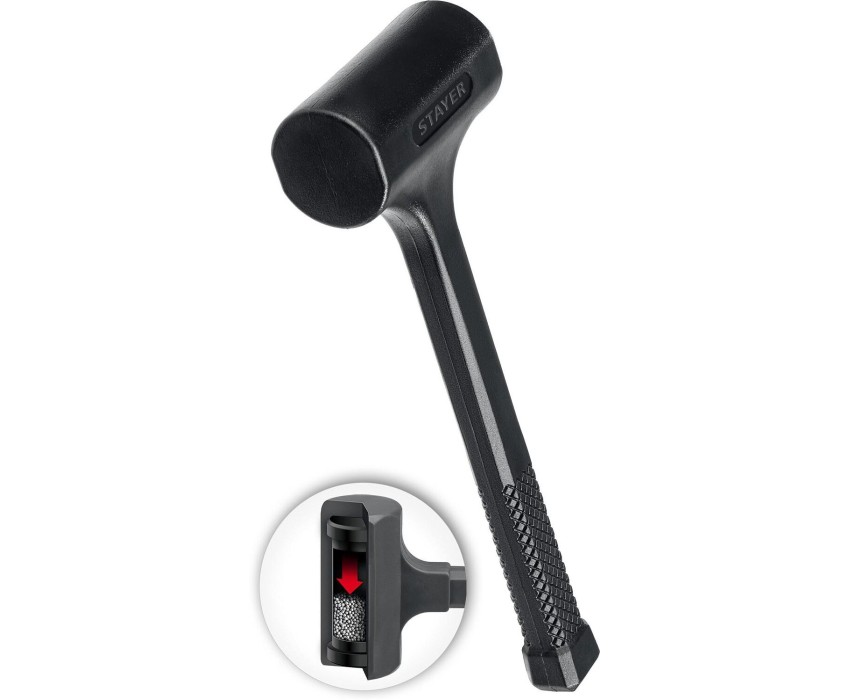 Профессиональный безинерционный инструмент Преимущества -Отсутствие отдачи, -Рабочая часть кувалды имеет пустотелую цельнолитую оболочку из ударопрочного пластика, облитого эластомером, -Маслобензостойкость, -Полная обливка корпуса молотка предотвращает царапины на поверхности и исключает искры, Рабочая часть кувалды имеет пустотелую цельнолитую оболочку из ударопрочного пластика, облитого эластомером Маслобензостойкость Полная обливка корпуса молотка предотвращает царапины на поверхности и исключает искры Использование для слесарно-монтажных и демонтажных работ, а также для работ с мягкими листовыми металлами