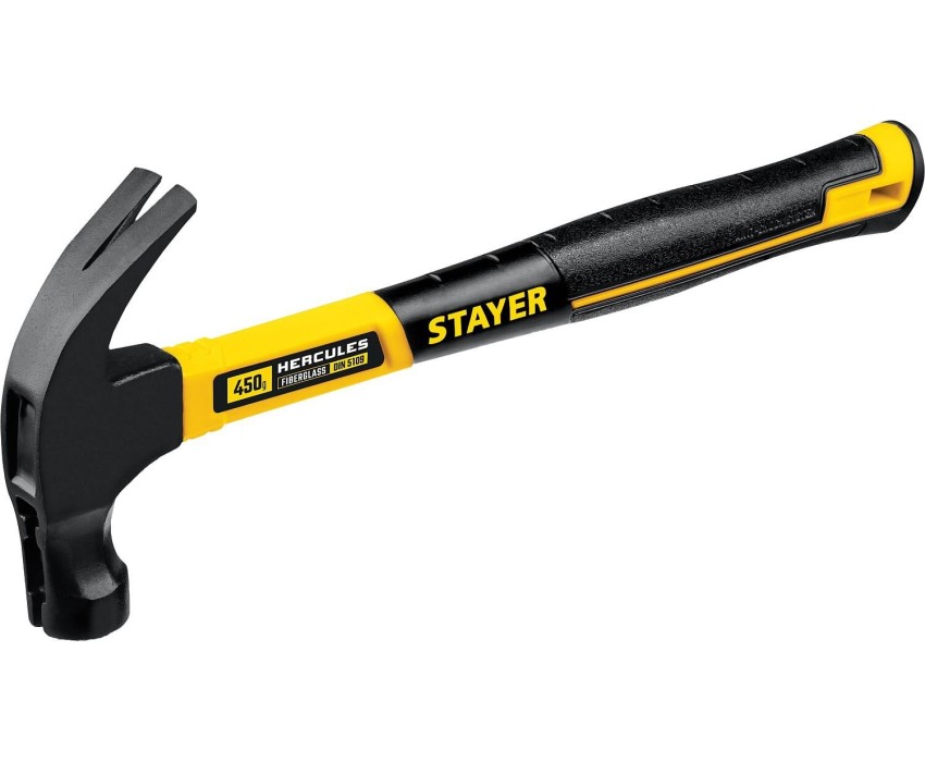 STAYER Hercules-M, 450 г, молоток-гвоздодёр столярный с фиберглассовой рукояткой, Professional (2027-450)