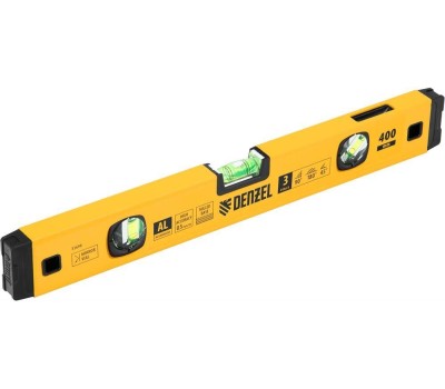 Уровень DENZEL Уровень алюминиевый, магнит., фрезерованный, 3 глазка (1 зеркал.) 0,5 мм/м, 400 мм 33690