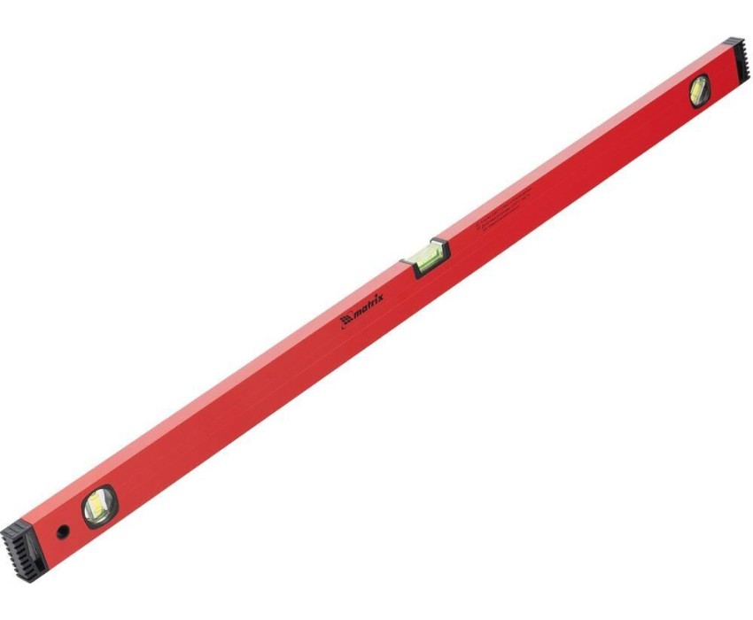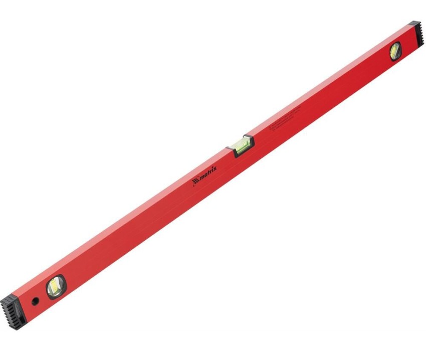 Фрезерованный алюминиевый уровень Matrix 33610 длиной 1000 мм, с 3 глазками, пригодится мастерам во время строительства, ремонта и выполнения монтажных работ. Уровень с 3 глазками служит для проверки горизонтали и вертикали, а также угла 45 градусов.,Для определения отклонения вертикали 90 градусов необходимо использовать пузырьковую ампулу только в верхнем положении уровня. Только базовая поверхность является рабочей (противоположная ампуле 180 градусов). Преимущества Инструмент выполнен из жесткого алюминиевого профиля, что обеспечивает его высокий ресурс и надежность. Фрезерованная рабочая плоскость минимизирует погрешность проводимых измерений (1 мм/м или 0,057 градуса). Уровень оснащен надежными акриловыми колбами.