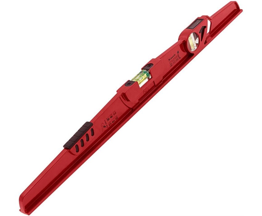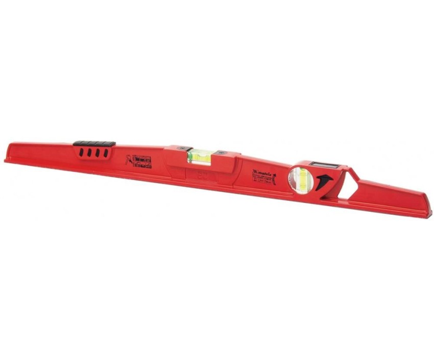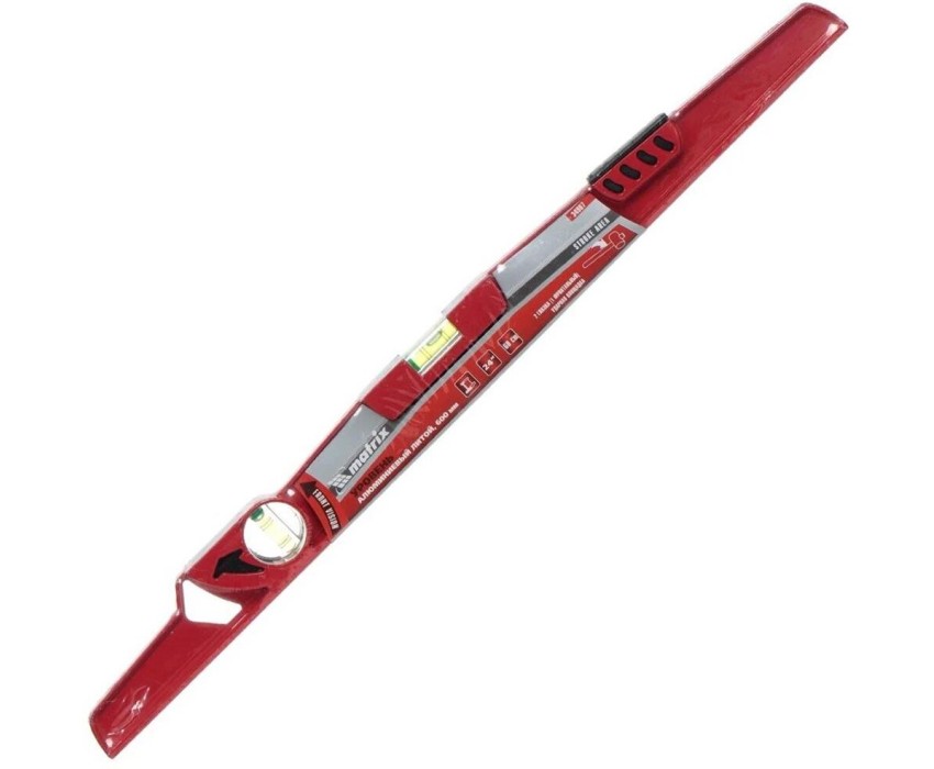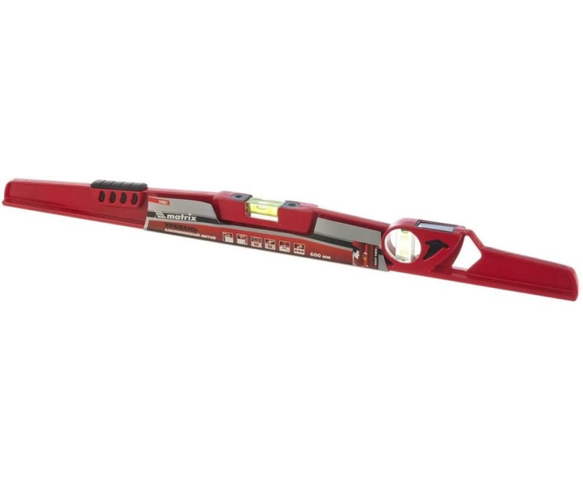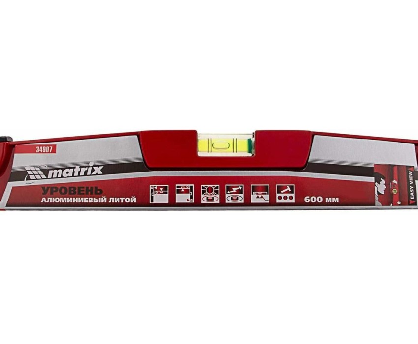 Литой алюминиевый уровень Matrix 34907 длиной 600 мм, с ударной площадкой, оснащен 2 глазками, 1 из которых фронтальный. Инструмент предназначен для использования на строительной площадке, выполнения ремонтных и монтажных работ. Оптимален для выравнивания плитки и кирпичной кладки. Преимущества Прочность и долговечность — цельнометаллический алюминиевый профиль устойчив к металлическим нагрузкам. Функциональность — ударная площадка позволяет наносить несильные удары резиновой киянкой для дополнительного выравнивания материала. Удобная эксплуатация — вертикальный глазок с зеркальным отражателем облегчает считывание результатов. Высокая точность измерений — каждый глазок имеет 4 дополнительные насечки. Быстрый поиск нужного уровня — инструмент снабжен двухсторонним информационным вкладышем, на корпусе имеются пиктограммы с обозначением основных характеристик.