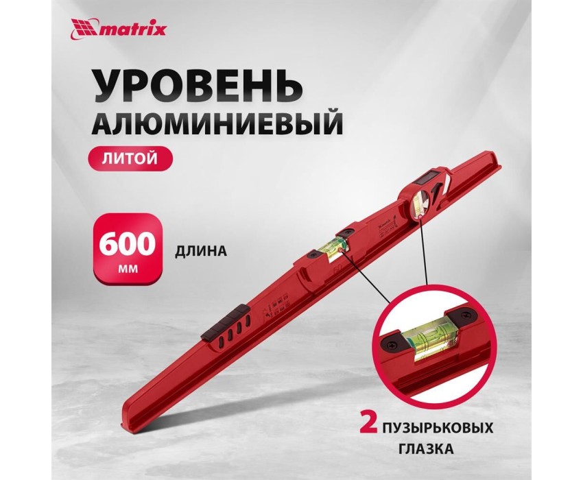 Уровень MATRIX Уровень алюминиевый, 600 мм, литой, 2 глазка (1 фронтальный), ударная площадка 34907