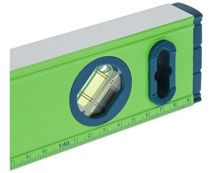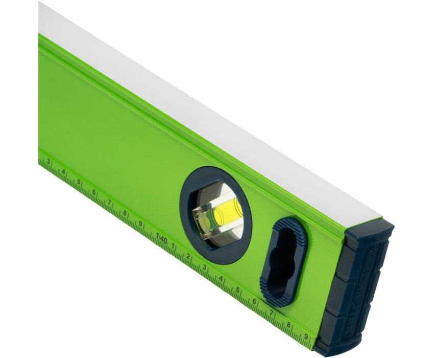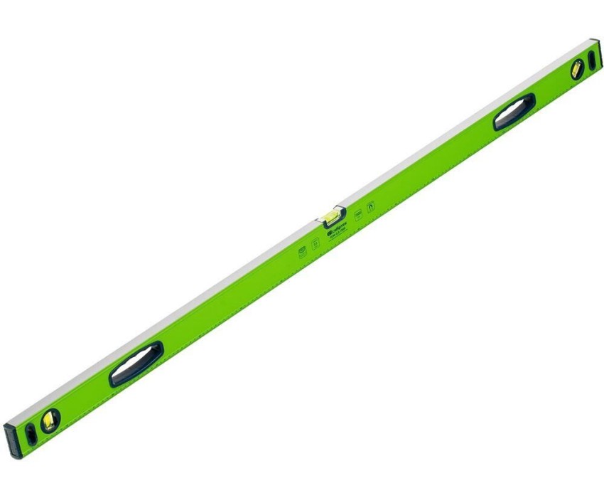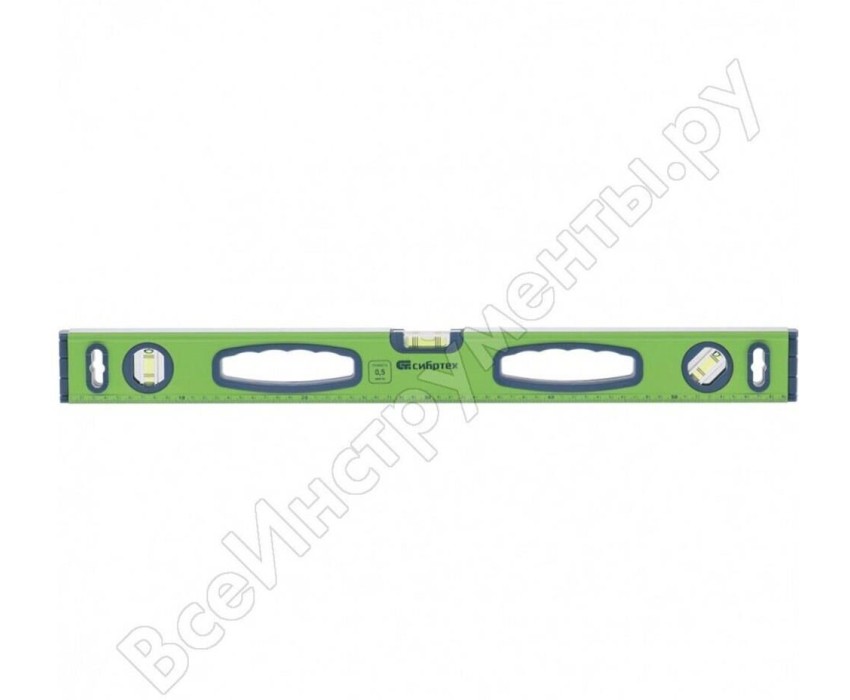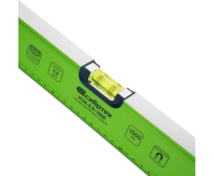Уровень алюминиевый магнитный Сибртех УСМ-0,5-1500 34119 длиной 1500 мм, фрезерованный, с рукоятками и 3 глазками, позволяет оценить ровность поверхностей и определить отклонения относительно горизонтали, вертикали и угла 45°. Будет полезен на строительной площадке, а также для выполнения работ по облицовке и отделке помещений, для монтажа конструкций. Преимущества Высокие прочностные характеристики — инструмент изготовлен из легкого алюминиевого профиля. Фиксация на металлических поверхностях — встроенные магниты позволяют освободить руки во время работы. Точные результаты — пузырьковые ампулы установлены при помощи электронного контроля, рабочая поверхность фрезерована, поэтому погрешность не превышает 0,5 мм/м. Комфортная работа — отверстия с подпальцевыми упорами обеспечивают надежный хват. Дополнительные возможности — измерительная шкала позволяет определять размеры предметов. Для определения отклонения вертикали 90° необходимо использовать пузырьковую ампулу только в верхнем положении уровня. Только базовая поверхность (противоположная ампуле 180°) является рабочей.