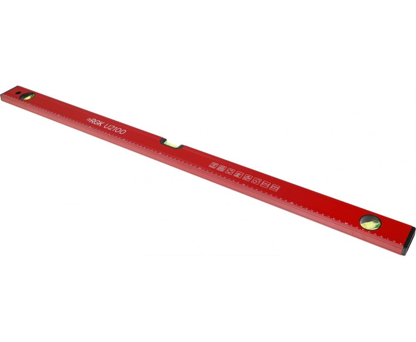 Ширина товара: 1000 мм Высота товара: 50 мм Модель: U2100 Глубина товара: 25 мм Вес товара: 430 грамм Описание: Строительный уровень RGK U2100 длиной 1 м. оснащен тремя ампулами, расположенными горизонтально, вертикально и под углом 45 град. Боковые пластиковые вставки защищают уровень при падении. Бренд: RGK PartNumber/Артикул Производителя: 4610011873751 Размеры: 1000x50x25мм Габариты упаковки (ед) ДхШхВ: 1x0.06x0.03 м Вес упаковки (ед): 0.3 кг Объем упаковки (ед): 0.0018 м3 Количество глазков: 3 шт Наличие магнита: ДА Погрешность измерения: 1 мм/м Тип: Уровень Тип уровня: пузырьковый Противоударный корпус: ДА Оптимальный диапазон измерения: 0-360 Точность измерения: 1 мм/м Измерительная линейка на корпусе: ДА Длина уровня (ватерпаса): 100 см Тип корпуса: коробчатый Основной материал корпуса: металл Цвет: красный Страна производства: Китай