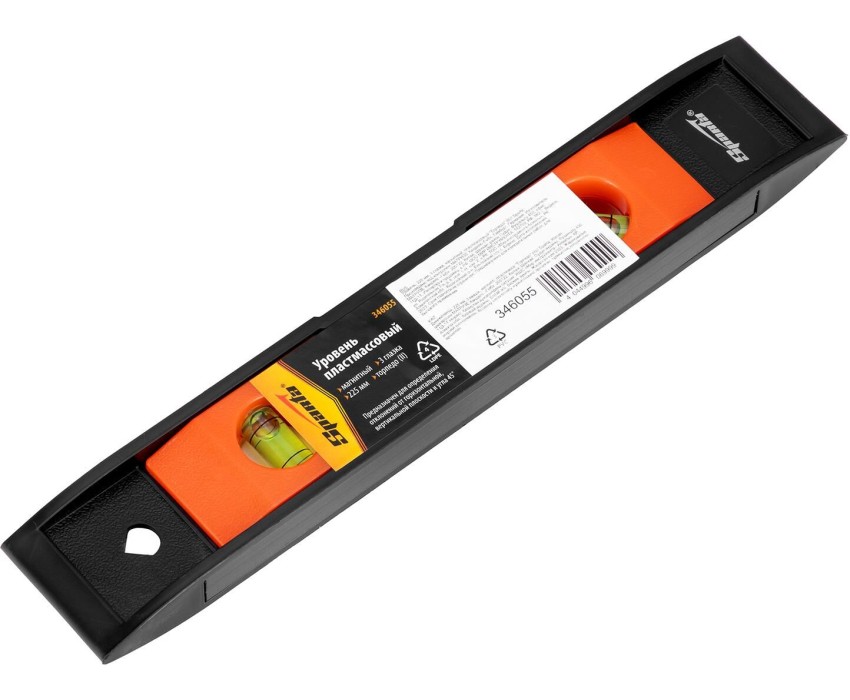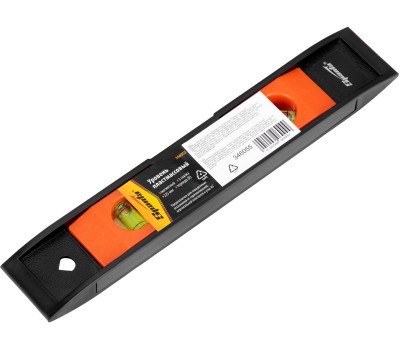 Пластмассовый магнитный уровень Sparta «Торпедо» (II) 346055 длиной 225 мм, с 3 глазками, используется для контроля соответствия поверхностей вертикальной и горизонтальной плоскостям, а также углу 45°. Компактный инструмент удобен для работы в труднодоступных местах. Преимущества Уровень выполнен из прочной пластмассы и рассчитан на долгую службу. В корпус встроен магнит для фиксации инструмента на металлических поверхностях. Отверстие в корпусе позволяет организовать подвесное хранение. Для определения отклонения вертикали 90° необходимо использовать пузырьковую ампулу только в верхнем положении уровня. Только базовая поверхность (противоположная ампуле 180°) является рабочей.