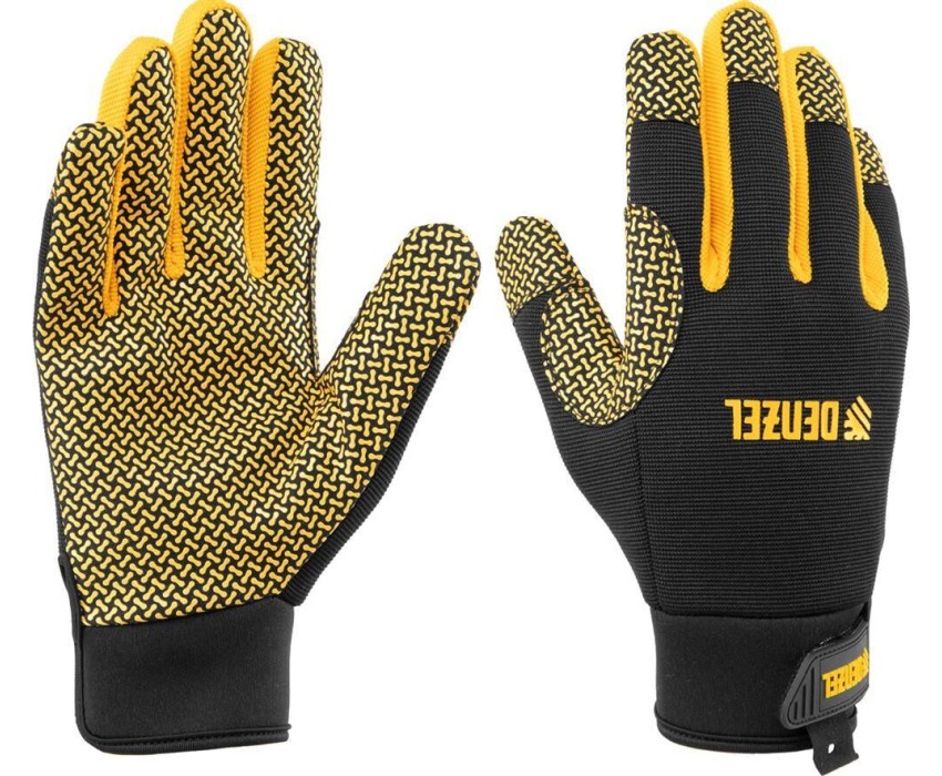 Универсальные перчатки Denzel 67999 размера 9, с силиконовым нанесением, предназначены для защиты кожи рук от механических повреждений. Используются во время слесарных и столярных работ.ПреимуществаПрочность перчатки изготовлены из полиэстера, неопрена, полиамида и других материалов, устойчивых к разрыву истиранию.Антискользящие свойства силиконовое покрытие обеспечивает надежный захват инструмента.Манжеты на липучке перчатки надежно фиксируются на запястьях и не сползают во время работы.