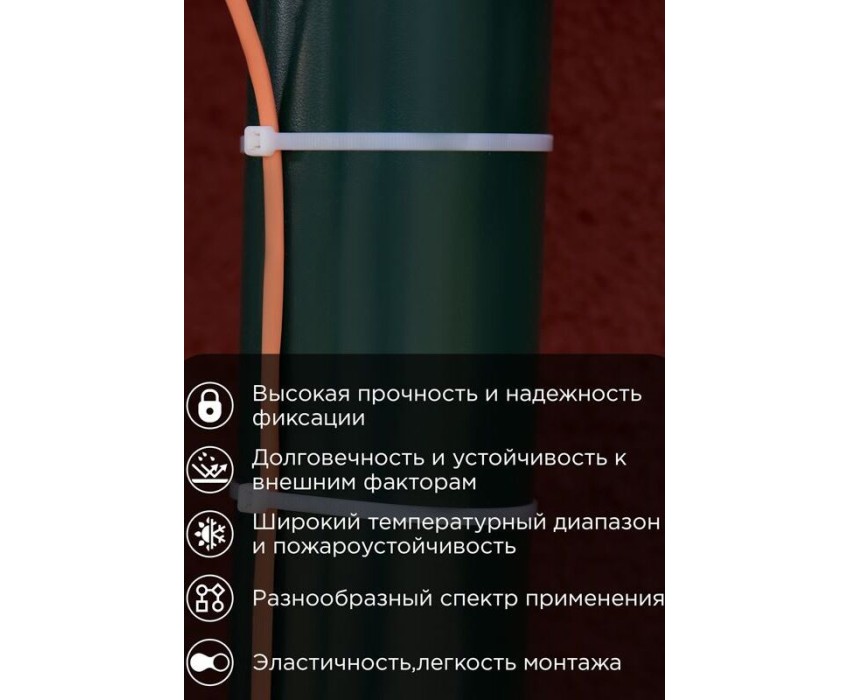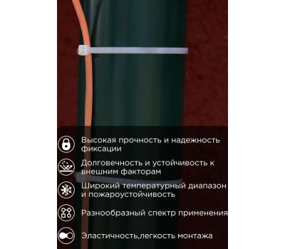 Хомут нейлоновый с тройным замком 400x4,8мм белого цвета позволяет зафиксировать провода, кабели и трубы в необходимом положении, собрать их в жгут, прикрепить к какому-либо основанию. Изделия имеют широкую область применения, в связи с чем используются во многих сферах жизнедеятельности и в быту.