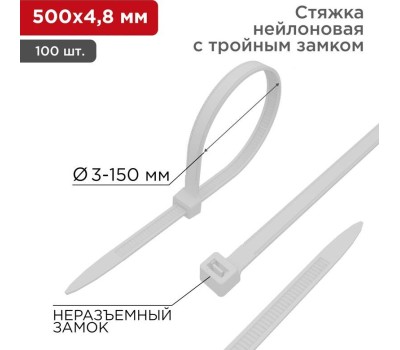 REXANT Стяжка нейлоновая Профессиональная 500x4,8мм, белая (100 шт/уп)