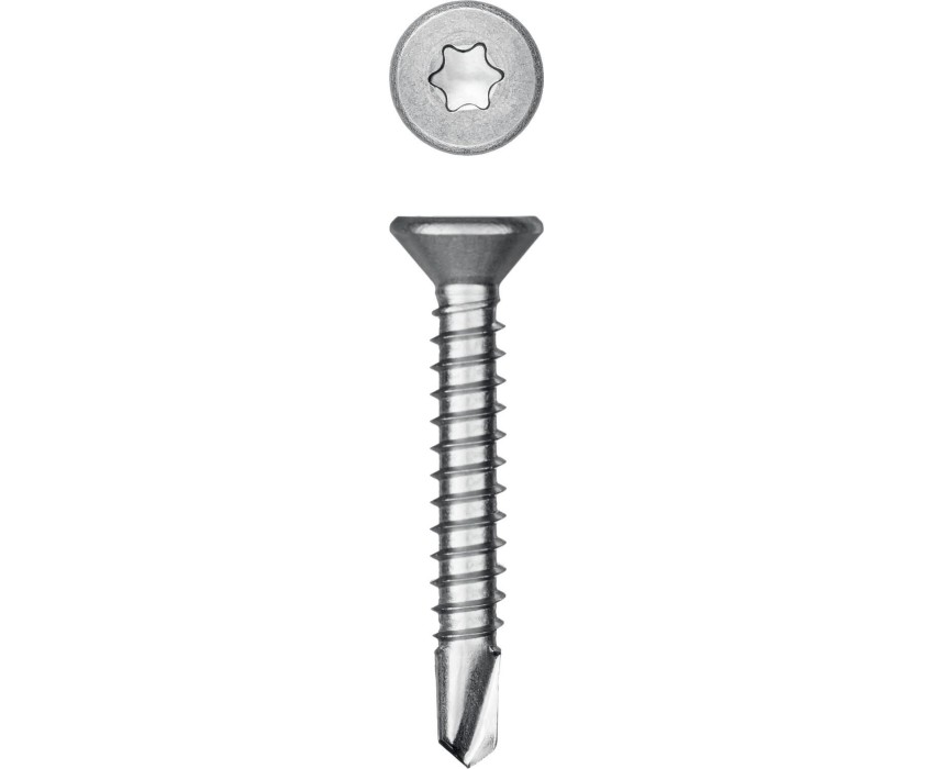 Саморезы с потайной головкой и сверлом изготовлены в соответствии со стандартом DIN7504P из нержавеющего прутка. Легирование никелем, хромом и марганцем полностью сохраняет аустенитную структуру кристаллической решетки, благодаря чему нержавеющие саморезы обладают хорошей прочностью и пластичностью, немагнитными свойствами и невысокой электропроводностью. Саморезы легко вкручиваются обычным шуруповертом или отверткой. Преимущества Устойчивость к воздействию неблагоприятных условий - повышенной влажности, различным агрессивным средам (в т.ч. кислотным), большим перепадам температур и т.п. Повышенная прочность и коррозионостойкость Аустенитная сталь А2 сохраняет свои прочностные свойства в широком диапазоне температур: от -200°С до +600°С, хорошо подвергается механической и термической обработке, а также сварке. Износостойкий шлиц TORX предотвращает срывание биты при закручивании и обеспечивает большой крутящий момент Крепление заподлицо в мягком материале благодаря потайной головке. Для крепления заподлицо в жестких материалах необходимо произвести предварительную подготовку (зенкование) отверстия. Улучшенная геометрия сверла обеспечивает быстроту и легкость сверления в листовых материалах Использование Для соединения элементов конструкций из алюминия, дерева и пластика без предварительного сверления. Для соединения элементов из стали рекомендуется предварительно просверлить отверстие необходимого диаметра.