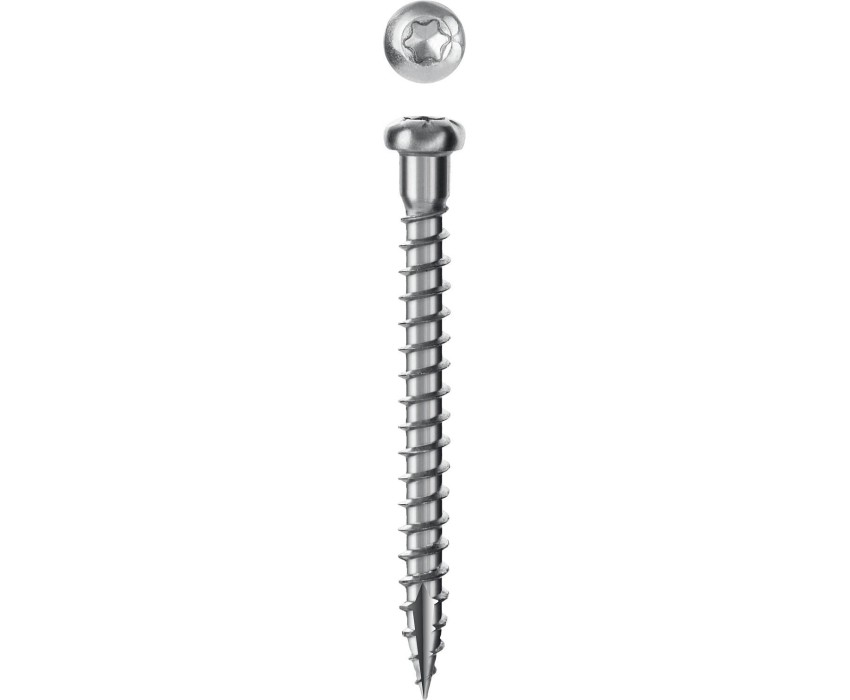 Конструкционные саморезы обладают высокой прочностью и пластичностью, благодаря чему не разрушаются при деформациях и изгибе. Режущая кромка на острие и точная геометрия резьбы значительно облегчают вкручивание самореза и предотвращают растрескивание древесины. Преимущества Режущая кромка на острие рассверливает древесину без предварительного сверления, не допуская ее расщепления, что особенно важно при работе близко к краям. Износостойкий шлиц TORX предотвращает срывание биты при закручивании и обеспечивает большой крутящий момент. Сферическая головка с конусным подголовником плотно прижимает листовой металл к опорной поверхности. Цинковое покрытие надежно защищает от коррозии Использование Для крепления префорированных крепежных изделий к деревянным конструкциям