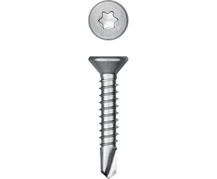 Саморезы с потайной головкой и сверлом изготовлены в соответствии со стандартом DIN7504P из нержавеющего прутка. Легирование никелем, хромом и марганцем полностью сохраняет аустенитную структуру кристаллической решетки, благодаря чему нержавеющие саморезы обладают хорошей прочностью и пластичностью, немагнитными свойствами и невысокой электропроводностью. Саморезы легко вкручиваются обычным шуруповертом или отверткой. Преимущества Устойчивость к воздействию неблагоприятных условий - повышенной влажности, различным агрессивным средам (в т.ч. кислотным), большим перепадам температур и т.п. Повышенная прочность и коррозионостойкость Аустенитная сталь А2 сохраняет свои прочностные свойства в широком диапазоне температур: от -200°С до +600°С, хорошо подвергается механической и термической обработке, а также сварке. Износостойкий шлиц TORX предотвращает срывание биты при закручивании и обеспечивает большой крутящий момент Крепление заподлицо в мягком материале благодаря потайной головке. Для крепления заподлицо в жестких материалах необходимо произвести предварительную подготовку (зенкование) отверстия. Улучшенная геометрия сверла обеспечивает быстроту и легкость сверления в листовых материалах Использование Для соединения элементов конструкций из алюминия, дерева и пластика без предварительного сверления. Для соединения элементов из стали рекомендуется предварительно просверлить отверстие необходимого диаметра.
