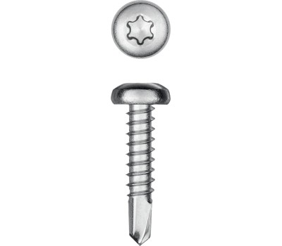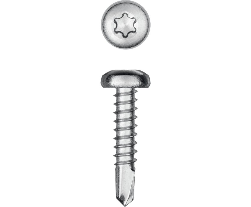 Саморезы с полукруглой головкой и сверлом изготовлены в соответствии со стандартом DIN7504N из нержавеющего прутка. Легирование никелем, хромом и марганцем полностью сохраняет аустенитную структуру кристаллической решетки, благодаря чему нержавеющие саморезы обладают хорошей прочностью и пластичностью, немагнитными свойствами и невысокой электропроводностью. Саморезы легко вкручиваются обычным шуруповертом или отверткой. Преимущества Устойчивость к воздействию неблагоприятных условий - повышенной влажности, различным агрессивным средам (в т.ч. кислотным), большим перепадам температур и т.п. Повышенная прочность и коррозионостойкость Аустенитная сталь А2 сохраняет свои прочностные свойства в широком диапазоне температур: от -200°С до +600°С, хорошо подвергается механической и термической обработке, а также сварке. Износостойкий шлиц TORX предотвращает срывание биты при закручивании и обеспечивает большой крутящий момент Полукруглая головка с плоской площадкой обеспечивает плотное прилегание конструкции к основанию и возможность использования шайбы для усиления давления на опорную поверхность Улучшенная геометрия сверла обеспечивает быстроту и легкость сверления в листовых материалах Использование Для соединения элементов конструкций из алюминия, дерева и пластика без предварительного сверления. Для соединения элементов из стали рекомендуется предварительно просверлить отверстие необходимого диаметра.