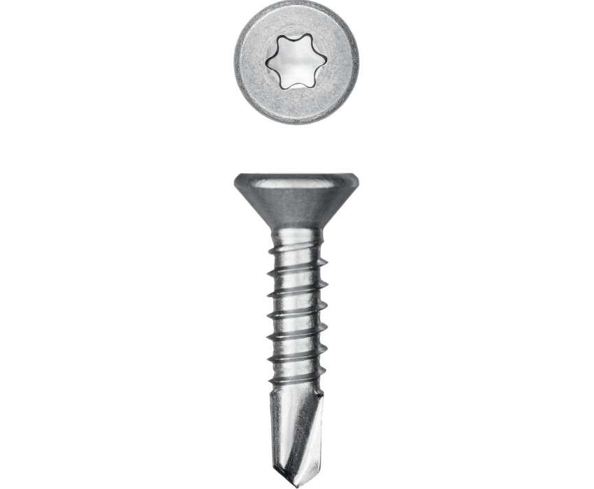 Саморезы с потайной головкой и сверлом изготовлены в соответствии со стандартом DIN7504P из нержавеющего прутка. Легирование никелем, хромом и марганцем полностью сохраняет аустенитную структуру кристаллической решетки, благодаря чему нержавеющие саморезы обладают хорошей прочностью и пластичностью, немагнитными свойствами и невысокой электропроводностью. Саморезы легко вкручиваются обычным шуруповертом или отверткой. Преимущества Устойчивость к воздействию неблагоприятных условий - повышенной влажности, различным агрессивным средам (в т.ч. кислотным), большим перепадам температур и т.п. Повышенная прочность и коррозионостойкость Аустенитная сталь А2 сохраняет свои прочностные свойства в широком диапазоне температур: от -200°С до +600°С, хорошо подвергается механической и термической обработке, а также сварке. Износостойкий шлиц TORX предотвращает срывание биты при закручивании и обеспечивает большой крутящий момент Крепление заподлицо в мягком материале благодаря потайной головке. Для крепления заподлицо в жестких материалах необходимо произвести предварительную подготовку (зенкование) отверстия. Улучшенная геометрия сверла обеспечивает быстроту и легкость сверления в листовых материалах Использование Для соединения элементов конструкций из алюминия, дерева и пластика без предварительного сверления. Для соединения элементов из стали рекомендуется предварительно просверлить отверстие необходимого диаметра.