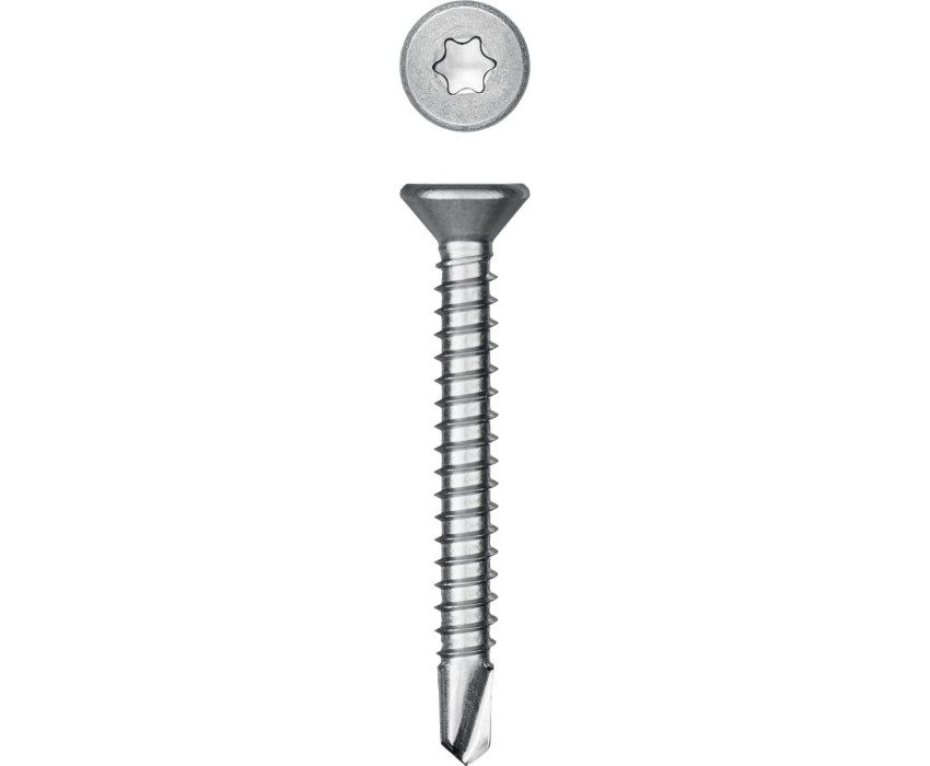 Саморезы с потайной головкой и сверлом изготовлены в соответствии со стандартом DIN7504P из нержавеющего прутка. Легирование никелем, хромом и марганцем полностью сохраняет аустенитную структуру кристаллической решетки, благодаря чему нержавеющие саморезы обладают хорошей прочностью и пластичностью, немагнитными свойствами и невысокой электропроводностью. Саморезы легко вкручиваются обычным шуруповертом или отверткой. Преимущества Устойчивость к воздействию неблагоприятных условий - повышенной влажности, различным агрессивным средам (в т.ч. кислотным), большим перепадам температур и т.п. Повышенная прочность и коррозионостойкость Аустенитная сталь А2 сохраняет свои прочностные свойства в широком диапазоне температур: от -200°С до +600°С, хорошо подвергается механической и термической обработке, а также сварке. Износостойкий шлиц TORX предотвращает срывание биты при закручивании и обеспечивает большой крутящий момент Крепление заподлицо в мягком материале благодаря потайной головке. Для крепления заподлицо в жестких материалах необходимо произвести предварительную подготовку (зенкование) отверстия. Улучшенная геометрия сверла обеспечивает быстроту и легкость сверления в листовых материалах Использование Для соединения элементов конструкций из алюминия, дерева и пластика без предварительного сверления. Для соединения элементов из стали рекомендуется предварительно просверлить отверстие необходимого диаметра.