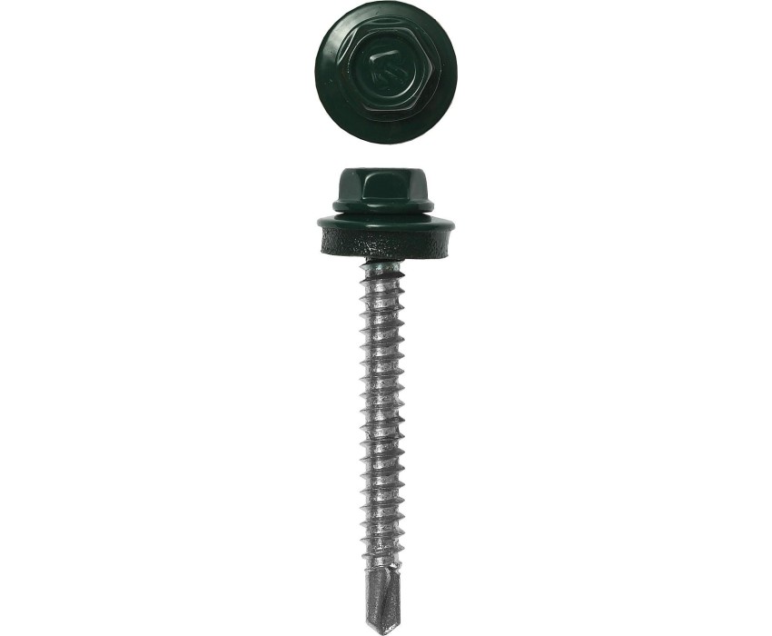 Кровельные саморезы изготовлены из стального прутка с высоким содержанием углерода. Контроль за геометрией самореза начинается с калибровки прутка и заканчивается тщательной проверкой размеров готового изделия. Нормативная твердость стали достигается термической обработкой. Поверхностная твердость мин. 560HV, твердость в сердцевине 240-425HV. Шайба с прокладкой EPDM плотно прижимается к кровельному материалу, герметизируя просверленное отверстие. Шестигранная головка выдерживает большой крутящий момент и значительно облегчает вкручивание самореза. Геометрические размеры: диаметр шайбы (Dw) - 13.90-14.15мм, толщина прокладки (Ar) - 2мм, Размер под ключ (S) - 7.8-7.9мм, диаметр резьбы (D) - 4.75-4.95мм, диаметр сверла (dp) - 2.8-2.9мм, длина сверла (ds) - 4.0-4.8мм, шаг резьбы (Pi) - 2.12мм. Преимущества Прокладка EPDM сохраняет свои свойства при частых изменениях нагрузок, температуры и воздействии УФ излучения Окраска головки с шайбой выполнена методом порошкового напыления. Cтандарт RAL поможет безошибочно подобрать саморезы под цвет кровельных материалов. Улучшенная геометрия сверла обеспечивает быстроту и легкость сверления в черепице и листовых кровельных материалах Цинковое покрытие надежно защищает от коррозии Использование Для крепления кровельных материалов к деревянной обрешетке (металлическим конструкциям)