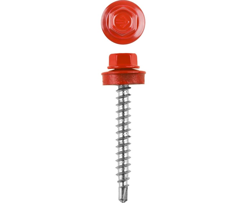 Кровельные саморезы изготовлены из стального прутка с высоким содержанием углерода. Контроль за геометрией самореза начинается с калибровки прутка и заканчивается тщательной проверкой размеров готового изделия. Нормативная твердость стали достигается термической обработкой. Поверхностная твердость мин. 560HV, твердость в сердцевине 240-425HV. Шайба с прокладкой EPDM плотно прижимается к кровельному материалу, герметизируя просверленное отверстие. Шестигранная головка выдерживает большой крутящий момент и значительно облегчает вкручивание самореза. Геометрические размеры: диаметр шайбы (Dw) - 13.90-14.15мм, толщина прокладки (Ar) - 2мм, Размер под ключ (S) - 7.8-7.9мм, диаметр резьбы (D) - 4.75-4.95мм, диаметр сверла (dp) - 2.8-2.9мм, длина сверла (ds) - 4.0-4.8мм, шаг резьбы (Pi) - 2.12мм. Преимущества Прокладка EPDM сохраняет свои свойства при частых изменениях нагрузок, температуры и воздействии УФ излучения Окраска головки с шайбой выполнена методом порошкового напыления. Cтандарт RAL поможет безошибочно подобрать саморезы под цвет кровельных материалов. Улучшенная геометрия сверла обеспечивает быстроту и легкость сверления в черепице и листовых кровельных материалах Цинковое покрытие надежно защищает от коррозии Использование Для крепления кровельных материалов к деревянной обрешетке (металлическим конструкциям)
