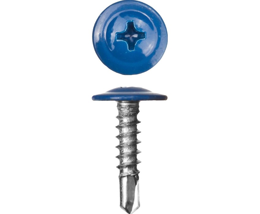 Саморезы с пресс-шайбой и сверлом для листового металла изготовлены из стального прутка с высоким содержанием углерода. Контроль за геометрией самореза начинается с калибровки прутка и заканчивается тщательной проверкой размеров готового изделия. Нормативная твердость стали достигается термической обработкой. Поверхностная твердость 560-720HV, твердость в сердцевине 240-425HV. Саморезы легко вкручиваются обычным шуруповертом или отверткой с крестообразным шлицем PH2 (DIN). Предварительное сверление в скрепляемых материалах не требуется. Геометрические размеры: диаметр пресс-шайбы (W) - 10.5-11.0мм, диаметр головки (Dk) - 6.5-7.0мм, диаметр резьбы (D) - 4.04-4.22мм, диаметр сверла (dp) - 3.1-3.2мм, длина сверла (ds) - 3.7-3.8мм, шаг резьбы (Pi) - 1.41мм. Преимущества Наконечник-сверло может просверливать металл толщиной до 2 мм без предварительной подготовки. Пресс-шайба увеличивает площадь опорной поверхности и предотвращает продавливание головки, благодаря чему саморезами можно крепить даже мягкие материалы. Окраска головки с пресс-шайбой выполнена методом порошкового напыления. Cтандарт RAL поможет безошибочно подобрать саморезы под цвет соединяемых материалов. Цинковое покрытие надежно защищает от коррозии Использование Для крепления тонких листов металла, профилей, пластика и др. к различным основаниям, в т.ч. к металлу толщиной до 2 мм.