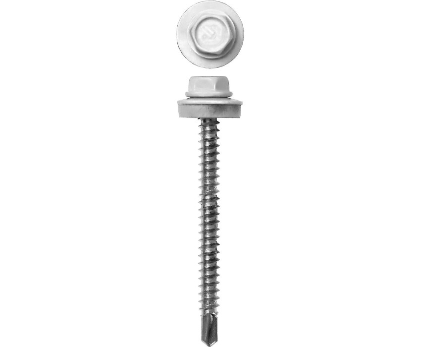 Кровельные саморезы изготовлены из стального прутка с высоким содержанием углерода. Контроль за геометрией самореза начинается с калибровки прутка и заканчивается тщательной проверкой размеров готового изделия. Нормативная твердость стали достигается термической обработкой. Поверхностная твердость мин. 560HV, твердость в сердцевине 240-425HV. Шайба с прокладкой EPDM плотно прижимается к кровельному материалу, герметизируя просверленное отверстие. Шестигранная головка выдерживает большой крутящий момент и значительно облегчает вкручивание самореза. Геометрические размеры: диаметр шайбы (Dw) - 13.90-14.15мм, толщина прокладки (Ar) - 2мм, Размер под ключ (S) - 7.8-7.9мм, диаметр резьбы (D) - 4.75-4.95мм, диаметр сверла (dp) - 2.8-2.9мм, длина сверла (ds) - 4.0-4.8мм, шаг резьбы (Pi) - 2.12мм. Преимущества Прокладка EPDM сохраняет свои свойства при частых изменениях нагрузок, температуры и воздействии УФ излучения Окраска головки с шайбой выполнена методом порошкового напыления. Cтандарт RAL поможет безошибочно подобрать саморезы под цвет кровельных материалов. Улучшенная геометрия сверла обеспечивает быстроту и легкость сверления в черепице и листовых кровельных материалах Цинковое покрытие надежно защищает от коррозии Использование Для крепления кровельных материалов к деревянной обрешетке (металлическим конструкциям)