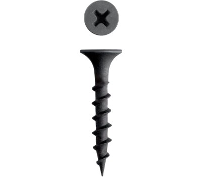 Саморезы для гипсокартона изготовлены из стального прутка с высоким содержанием углерода. Контроль за геометрией самореза начинается с калибровки прутка и заканчивается тщательной проверкой размеров готового изделия. Нормативная твердость стали достигается термической обработкой. Поверхностная твердость 450-720HV, твердость в сердцевине 290-450HV. Саморезы легко вкручиваются обычным шуруповертом или отверткой с крестообразным шлицем PH2 (DIN). Предварительное сверление в скрепляемых материалах не требуется. Преимущества Резьба с редким шагом разработана для крепления гипсокартона к деревянной обрешетке без крошения волокнистой структуры дерева. Двойная потайная головка утапливается в древесине, что придает конструкции эстетичный вид. Фосфатированное покрытие надежно защищает от коррозии Использование Для крепления гипсокартона к деревянным конструкциям. При работе с твердыми породами дерева (дуб, бук и т.п.) необходимо предварительное сверление.