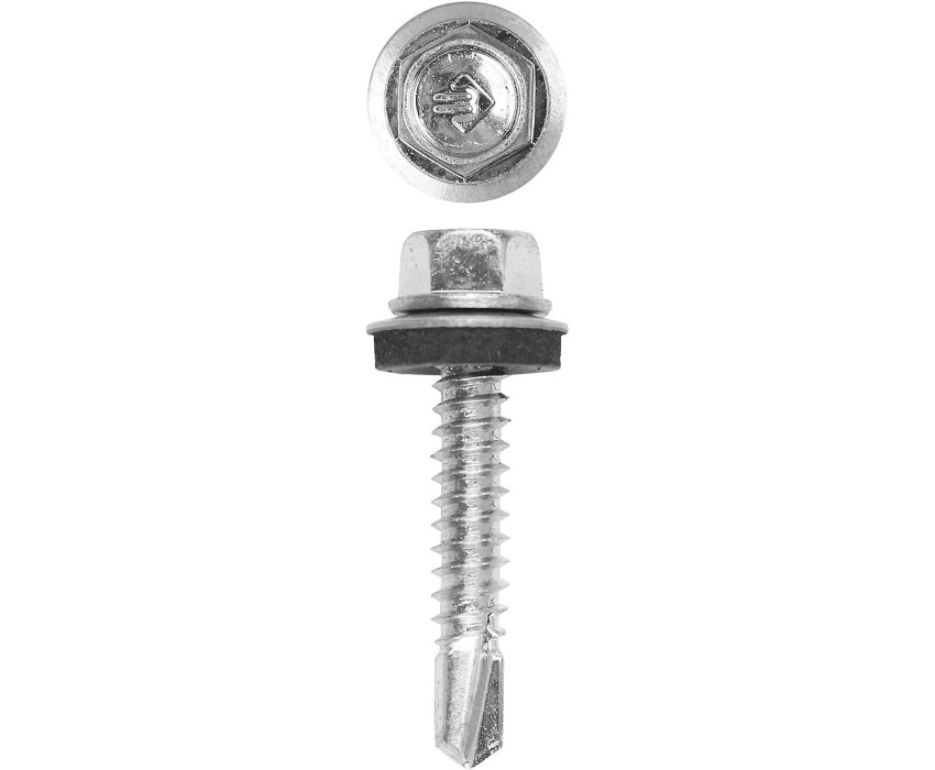 Кровельные саморезы изготовлены из стального прутка с высоким содержанием углерода. Контроль за геометрией самореза начинается с калибровки прутка и заканчивается тщательной проверкой размеров готового изделия. Нормативная твердость стали достигается термической обработкой. Поверхностная твердость мин. 560HV, твердость в сердцевине 240-425HV. Шайба с прокладкой EPDM толщиной 2мм плотно прижимается к кровельному материалу, герметизируя просверленное отверстие. Шестигранная головка выдерживает большой крутящий момент и значительно облегчает вкручивание самореза. Преимущества Прокладка EPDM сохраняет свои свойства при частых изменениях нагрузок, температуры и воздействии УФ излучения Улучшенная геометрия сверла обеспечивает быстроту и легкость сверления в черепице и листовых кровельных материалах Цинковое покрытие надежно защищает от коррозии Использование Для крепления кровельных материалов к деревянной обрешетке (металлическим конструкциям)