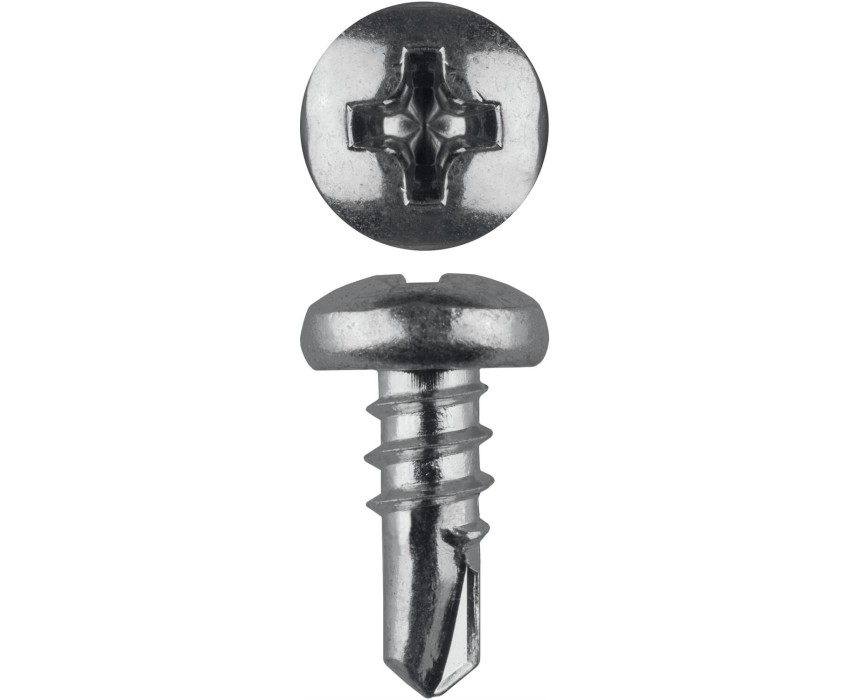 Саморезы со сферической головкой и сверлом для листового металла изготовлены из стального прутка с высоким содержанием углерода. Контроль за геометрией самореза начинается с калибровки прутка и заканчивается тщательной проверкой размеров готового изделия. Нормативная твердость стали достигается термической обработкой. Поверхностная твердость мин. 560HV, твердость в сердцевине 240-425HV. Саморезы легко вкручиваются обычным шуруповертом или отверткой с крестообразным шлицем PH2 (DIN). Предварительное сверление в скрепляемых материалах не требуется. Преимущества Наконечник самореза выполнен в форме сверла и может просверливать металл толщиной до 2 мм без предварительной подготовки. Насечки под головкой предотвращают самопроизвольное откручивание самореза Цинковое покрытие надежно защищает от коррозии Использование Для крепления тонких листов металла, профилей, пластика и др. к листовому металлу толщиной до 2 мм.
