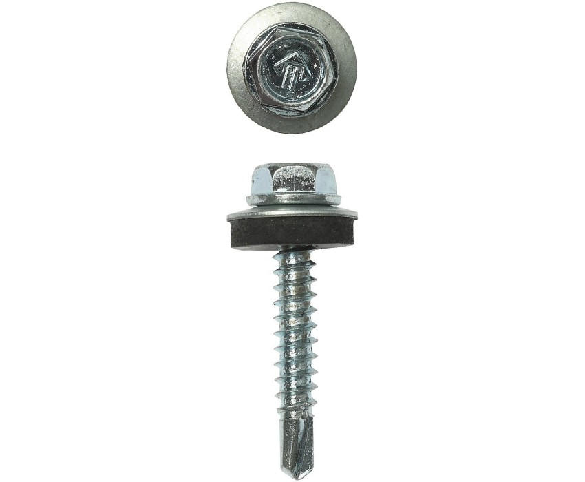 Кровельные саморезы изготовлены из стального прутка с высоким содержанием углерода. Контроль за геометрией самореза начинается с калибровки прутка и заканчивается тщательной проверкой размеров готового изделия. Нормативная твердость стали достигается термической обработкой. Поверхностная твердость мин. 560HV, твердость в сердцевине 240-425HV. Шайба с прокладкой EPDM плотно прижимается к кровельному материалу, герметизируя просверленное отверстие. Шестигранная головка выдерживает большой крутящий момент и значительно облегчает вкручивание самореза. Геометрические размеры: диаметр шайбы (Dw) - 13.90-14.15мм, толщина прокладки (Ar) - 2мм, Размер под ключ (S) - 7.8-7.9мм, диаметр резьбы (D) - 4.75-4.95мм, диаметр сверла (dp) - 2.8-2.9мм, длина сверла (ds) - 4.0-4.8мм, шаг резьбы (Pi) - 2.12мм. Преимущества Прокладка EPDM сохраняет свои свойства при частых изменениях нагрузок, температуры и воздействии УФ излучения Улучшенная геометрия сверла обеспечивает быстроту и легкость сверления в черепице и листовых кровельных материалах Цинковое покрытие надежно защищает от коррозии Использование Для крепления кровельных материалов к деревянной обрешетке (металлическим конструкциям)