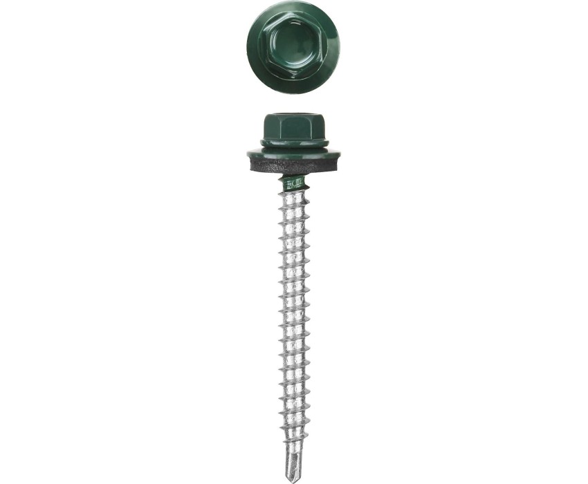 Кровельные саморезы STAYER изготовлены из высокоуглеродистой закаленной стали. Поверхностная твердость мин. 560HV, твердость в сердцевине 240-425HV. Шайба с прокладкой из износостойкой резины EPDM предназначена для герметизации соединения. Шестигранная головка с размером под ключ 8мм позволяет закручивать саморез с большим усилием. Преимущества Кровельные саморезы снабжены шайбой с прокладкой из резины EPDM, обеспечивающей герметичность соединения. Наконечник-сверло обеспечивает быстрое и легкое вкручивание самореза в черепицу и листовые кровельные материалы Головка самореза с шайбой окрашена по стандарту RAL Цинковое покрытие надежно защищает от коррозии Использование Предназначены для крепления различных кровельных материалов к металлическим конструкциям или деревянной обрешетке