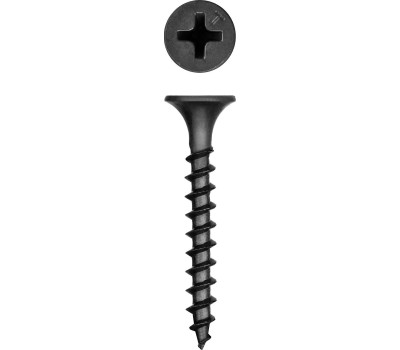 Саморезы изготовлены из стали с высоким содержанием углерода и прошли термическую обработку. Поверхностная твердость 550-720HV, твердость в сердцевине 290-450HV. Головка увеличенной толщины позволяет создавать большой крутящий момент при закручивании, обеспечивая надежное и крепкое соединение. Точность геометрической формы самореза и отсутствие сколов и трещин на поверхности резьбы обеспечивают легкое вкручивание и жесткую фиксацию самореза в материале. Для закручивания самореза необходима бита PH2. Преимущества Редкий шаг резьбы не допускает крошения волокнистой структуры дерева, обеспечивая надежное крепление гипсокартона к деревянной обрешетке. Двойная потайная головка полностью утапливается в гипсокартоне, не препятствуя финишной отделке поверхности. Фосфатированное покрытие обеспечивает защиту от коррозии и продлевает срок службы Использование Для крепления гипсокартона к деревянным конструкциям. При работе с твердыми породами дерева (дуб, бук и т.п.) необходимо предварительное сверление.