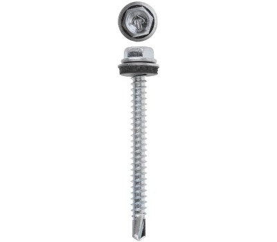 Кровельные саморезы изготовлены из стального прутка с высоким содержанием углерода. Контроль за геометрией самореза начинается с калибровки прутка и заканчивается тщательной проверкой размеров готового изделия. Нормативная твердость стали достигается термической обработкой. Поверхностная твердость мин. 560HV, твердость в сердцевине 240-425HV. Шайба с прокладкой EPDM плотно прижимается к кровельному материалу, герметизируя просверленное отверстие. Шестигранная головка выдерживает большой крутящий момент и значительно облегчает вкручивание самореза. Геометрические размеры: диаметр шайбы (Dw) - 13.90-14.15мм, толщина прокладки (Ar) - 2мм, Размер под ключ (S) - 7.8-7.9мм, диаметр резьбы (D) - 4.75-4.95мм, диаметр сверла (dp) - 2.8-2.9мм, длина сверла (ds) - 4.0-4.8мм, шаг резьбы (Pi) - 2.12мм. Преимущества Прокладка EPDM сохраняет свои свойства при частых изменениях нагрузок, температуры и воздействии УФ излучения Улучшенная геометрия сверла обеспечивает быстроту и легкость сверления в черепице и листовых кровельных материалах Цинковое покрытие надежно защищает от коррозии Использование Для крепления кровельных материалов к деревянной обрешетке (металлическим конструкциям)