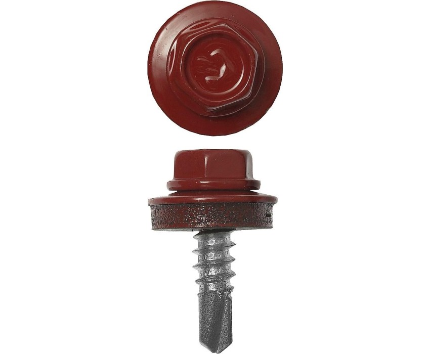 Кровельные саморезы изготовлены из стального прутка с высоким содержанием углерода. Контроль за геометрией самореза начинается с калибровки прутка и заканчивается тщательной проверкой размеров готового изделия. Нормативная твердость стали достигается термической обработкой. Поверхностная твердость мин. 560HV, твердость в сердцевине 240-425HV. Шайба с прокладкой EPDM толщиной 2мм плотно прижимается к кровельному материалу, герметизируя просверленное отверстие. Шестигранная головка выдерживает большой крутящий момент и значительно облегчает вкручивание самореза. Преимущества Прокладка EPDM сохраняет свои свойства при частых изменениях нагрузок, температуры и воздействии УФ излучения Окраска головки с шайбой выполнена методом порошкового напыления. Cтандарт RAL поможет безошибочно подобрать саморезы под цвет кровельных материалов. Улучшенная геометрия сверла обеспечивает быстроту и легкость сверления в черепице и листовых кровельных материалах Цинковое покрытие надежно защищает от коррозии Использование Для крепления кровельных материалов к деревянной обрешетке (металлическим конструкциям)