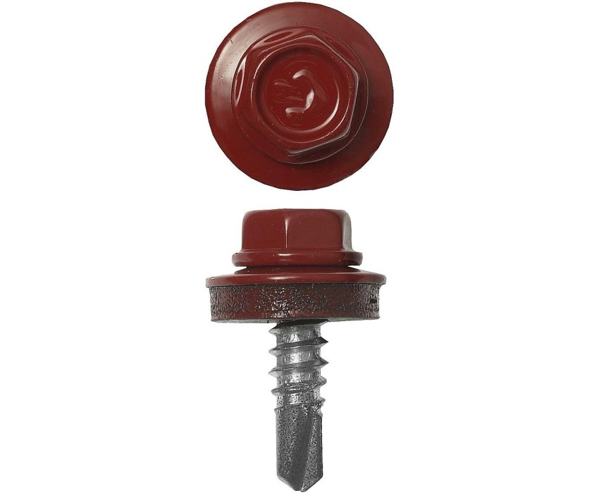 Кровельные саморезы изготовлены из стального прутка с высоким содержанием углерода. Контроль за геометрией самореза начинается с калибровки прутка и заканчивается тщательной проверкой размеров готового изделия. Нормативная твердость стали достигается термической обработкой. Поверхностная твердость мин. 560HV, твердость в сердцевине 240-425HV. Шайба с прокладкой EPDM толщиной 2мм плотно прижимается к кровельному материалу, герметизируя просверленное отверстие. Шестигранная головка выдерживает большой крутящий момент и значительно облегчает вкручивание самореза. Преимущества Прокладка EPDM сохраняет свои свойства при частых изменениях нагрузок, температуры и воздействии УФ излучения Окраска головки с шайбой выполнена методом порошкового напыления. Cтандарт RAL поможет безошибочно подобрать саморезы под цвет кровельных материалов. Улучшенная геометрия сверла обеспечивает быстроту и легкость сверления в черепице и листовых кровельных материалах Цинковое покрытие надежно защищает от коррозии Использование Для крепления кровельных материалов к деревянной обрешетке (металлическим конструкциям)