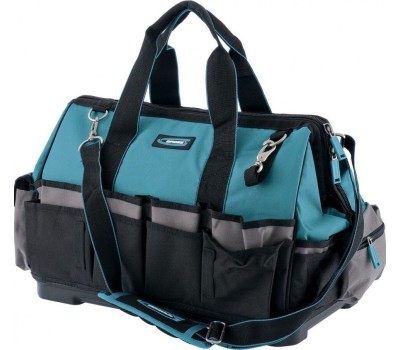 Сумка для инструмента предназначена для переноса и хранения ручного инструмента. Жесткое пластиковое дно устойчиво к внешним ударным воздействиям. Сумка оснащена двумя ручками, а также съемным наплечным ремнем на усиленных карабинах. 42 кармана (18 внутренних и 24 внешних). Размеры пластикового дна: 470 x 260 мм.