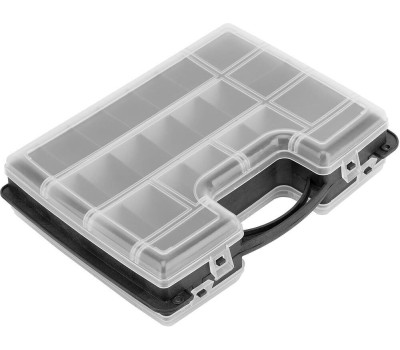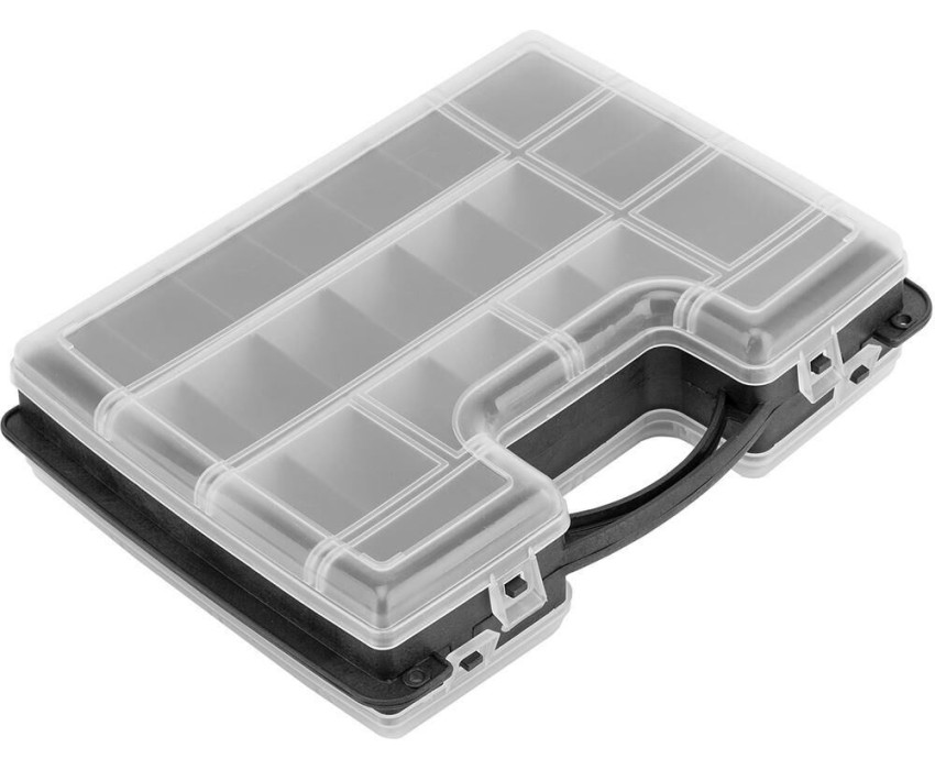 Двухсторонний органайзер Сибртех 90738 размером 295 х 220 х 76 мм помогает рассортировать мелкие вещи и хранить их в порядке и безопасности. В него можно положить снасти, крепеж, элементы рукоделия и т.д. Органайзер не занимает много места, поэтому его можно поместить под кровать, на стеллаж и в другие укромные места. Преимущества Полипропиленовый корпус отличается прочностью и износостойкостью, поэтому обеспечивает защиту вещей от пыли и влаги.Благодаря прозрачной крышке можно быстро просматривать содержимое органайзера.Органайзер оснащен 32 секциями различного размера для удобства хранения мелких и крупных предметов.За счет наличия ручки органайзер удобно транспортировать и брать на выездные работы.