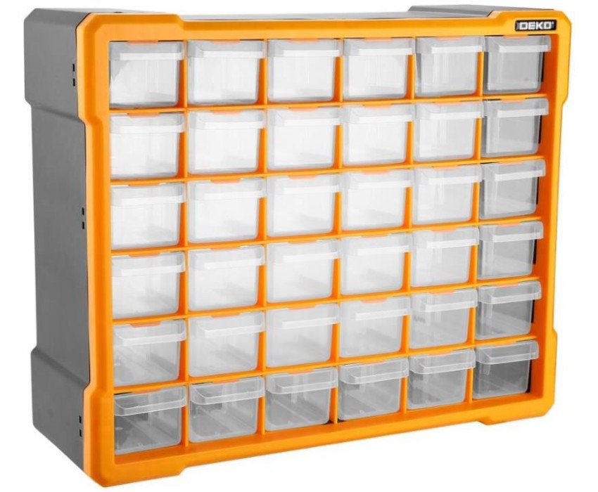 Система хранения DEKO ;RDKPS36 ;выполнена в форме вертикального кейса с выдвижными ящиками, служит для хранения и транспортировки крепежных изделий. Качественное исполнение гарантирует долгий срок службы ящика. Имеет 36 съемных секций. Система хранения выполнена из пластика.Габаритные размеры (см): 41х14х32,5Размеры ячеек (см): ;12х5.7х4.5