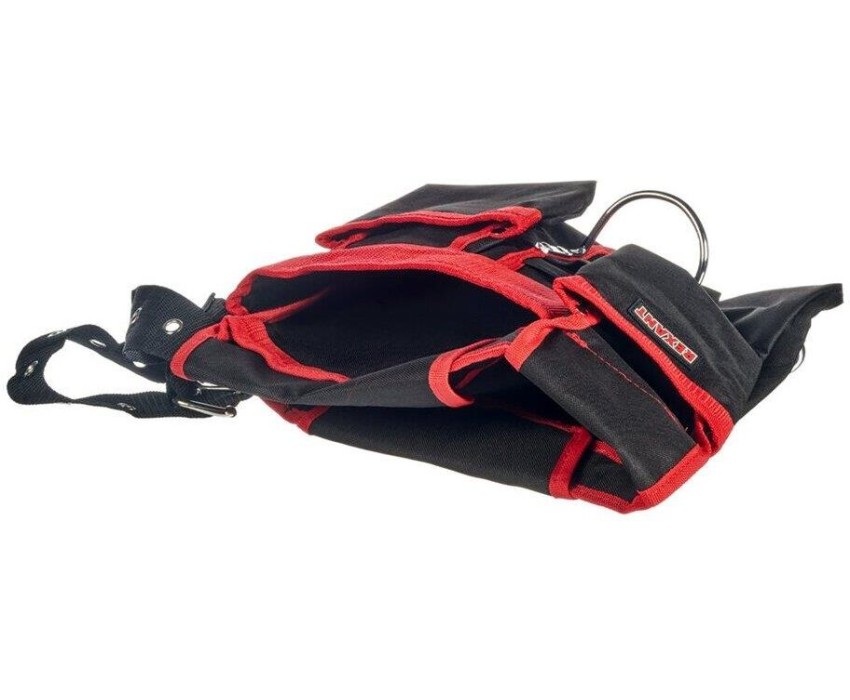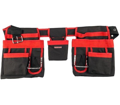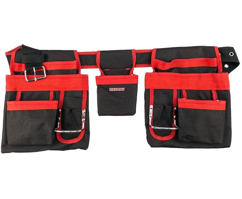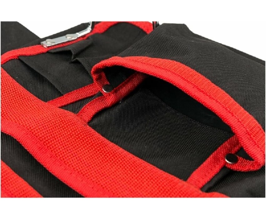 Сумка-пояс монтажника REXANT RE-15 оснащена 15 карманами и предназначена для комфортной транспортировки инструментов. Выполнена из водонепроницаемого комбинированного материала, пропитанного полиуретановым составом и поливинилхлоридом, который используют в изготовлении тентов для шатров, торговых палаток и различного снаряжения для туристических поездок. Надежные металлические элементы обладают длительным сроком службы. Характеристики: Габариты: 60х30 см Длина пояса: 130 см Материал: ткань «Оксфорд» 600D PVC PU Максимальный выдерживаемый вес: до 10 кг Вес рюкзака: 0.5 кг Цвет: черный, красный Преимущества: 2 симметричных больших подсумника, на каждом расположены карманы в количестве 15 штук 1 внутреннее отделение Прочный двухрядный полипропиленовый пояс с мощной металлической пряжкой Сумки закреплены на поясе металлическими заклепками