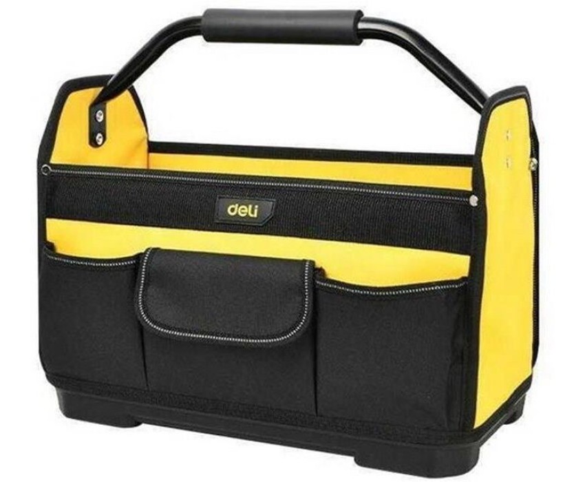 DELI Сумка для инструментов каркасная с жестким пластиковым дном DL586111 7 карманов, без плечевого ремня, ткань Оксфорд 600D