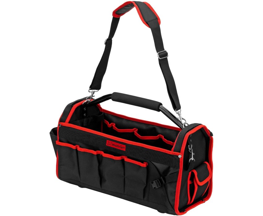 Каркасная переноска Matrix 90258 размером 490 х 230 х 280 мм удобна для перемещения и хранения инструментов. Имеет прочный каркас и весит 1,98 кг, ее легко транспортировать благодаря регулируемому плечевому ремню. В удобных карманах можно расположить все необходимые инструменты. Переноска пригодится дома, в гараже или в поездке. Преимущества Долговечность — переноска изготовлена из износостойкого полиэстера. Надежность — благодаря литому дну из полипропилена и крепко зафиксированной металлической ручке изделие выдерживает значительный вес. Эргономичность — на ручке имеется мягкая накладка, поэтому переноску удобно держать в руке.