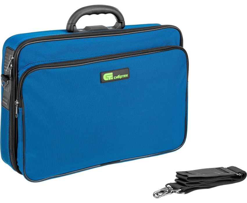 Кейс монтера Сибртех 90237 размером 470 х 340 х 110 мм, с наплечным ремнем, имеет 25 карманов для размещения ручных инструментов и необходимых деталей. Жесткая конструкция обеспечивает сохранность содержимого во время транспортировки и хранения. Такая сумка для инструментов будет полезна мастерам по ремонту техники, монтажникам, слесарям и электрикам. Преимущества Долговечность — при изготовлении использован прочный и износостойкий полиэстер 600D, устойчивый к истиранию, пластиковые торцевые накладки, стальные заклепки и усиленные карабины. Рациональная организация пространства — внутренний отсек имеет разделитель, также внутри предусмотрены зажимы для длинных инструментов. Удобное использование — застежки-молнии обеспечивают быстрый доступ к содержимому, для документов имеется специальный отсек, также есть карман с клапаном на липучке и большой отсек для крупных предметов. Комфортная транспортировка — производитель предусмотрел наплечный ремень с возможностью регулировки и эргономичную складывающуюся рукоятку.