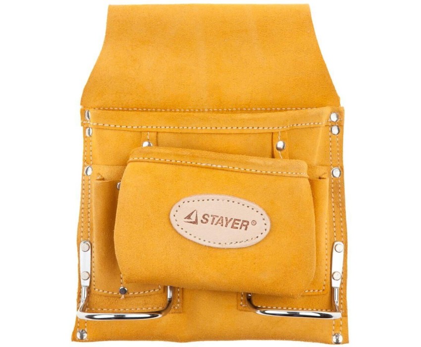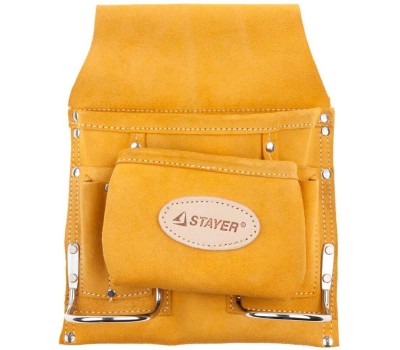 STAYER кожаная, 2 скобы, поясная сумка для инструментов с 8 карманами, Professional (38515)