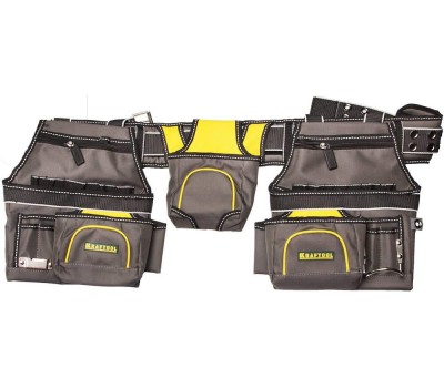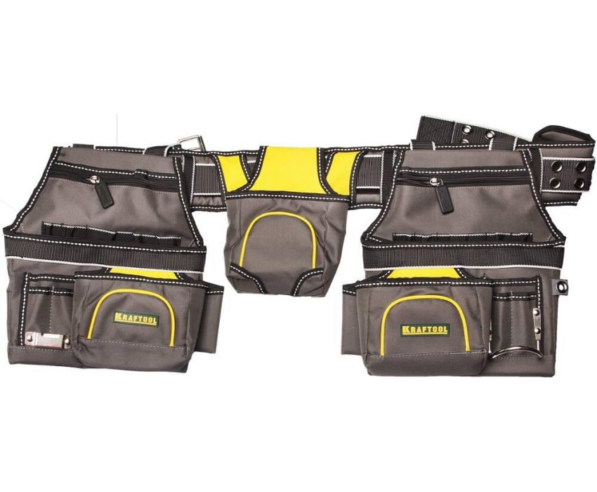 KRAFTOOL 2 петли для крепления молотка и рулетки, пояс монтажника с 20 карманами и 2 подвесными подсумками (38742)
