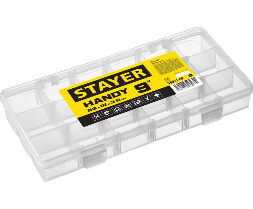 STAYER HANDY-9, 230 x 120 x 35 мм, (9″), пластиковый органайзер с 18 ячейками (38051-09)