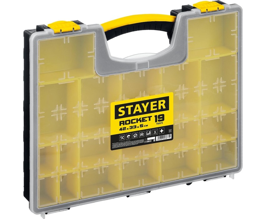STAYER ROCKET-19, 420 x 330 x 50 мм, (16.5″), пластиковый органайзер с 19 съемными лотками (2-38032)