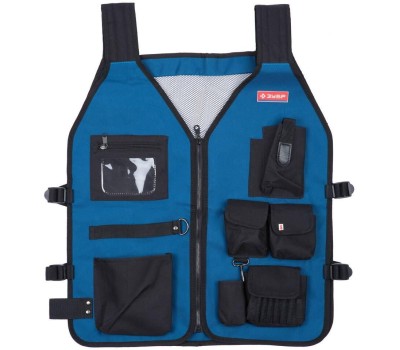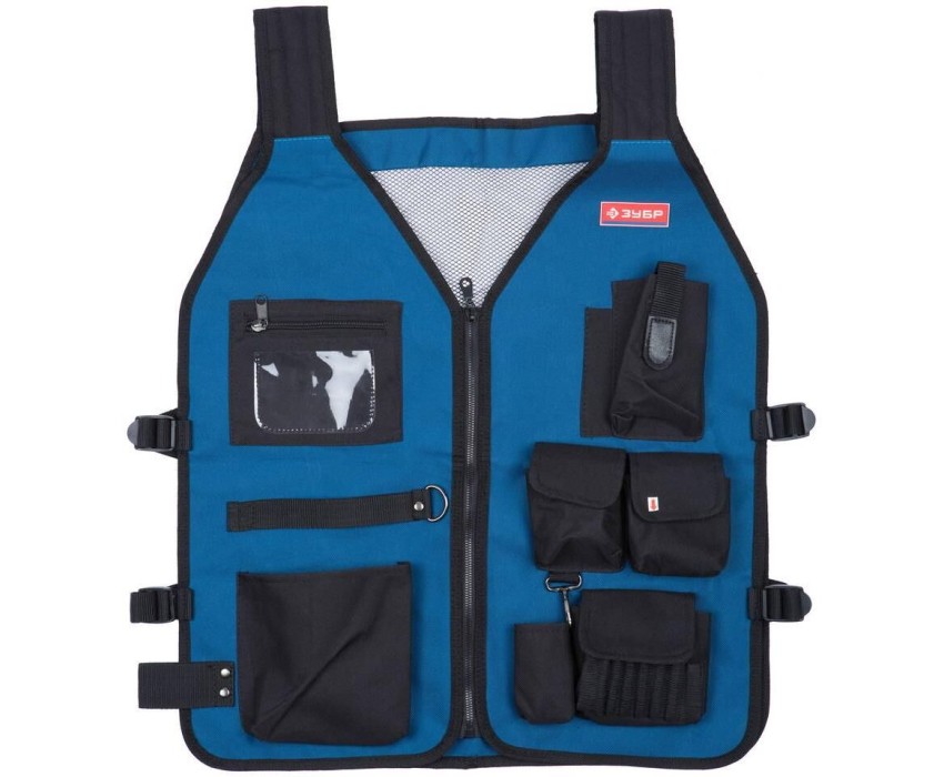 Жилет монтажника ЗУБР применяется для переноски и хранения малогабаритного инструмента. Он оснащен большим числом карманов и элементов крепления. Выполнен из высокопрочного нейлона. Преимущества Для изготовления выбран высококачественный синтетический материал с отличными прочностными характеристиками Регулировка размера благодаря застежкам, расположенным с боковых сторон Вставка из сетчатой ткани предотвращает прилипание жилета к спине Крепление для переноски молотка Специальное отделение для сверл Использование Применяется для переноски и хранения малогабаритного инструмента.