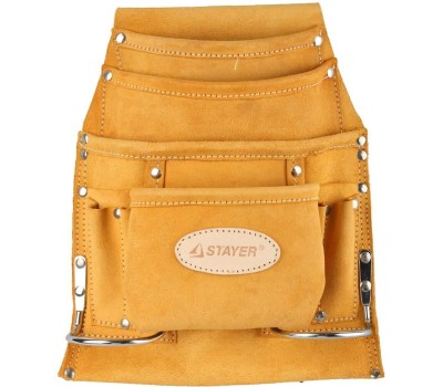 STAYER кожаная, 2 скобы, поясная сумка для инструментов с 10 карманами, Professional (38517)