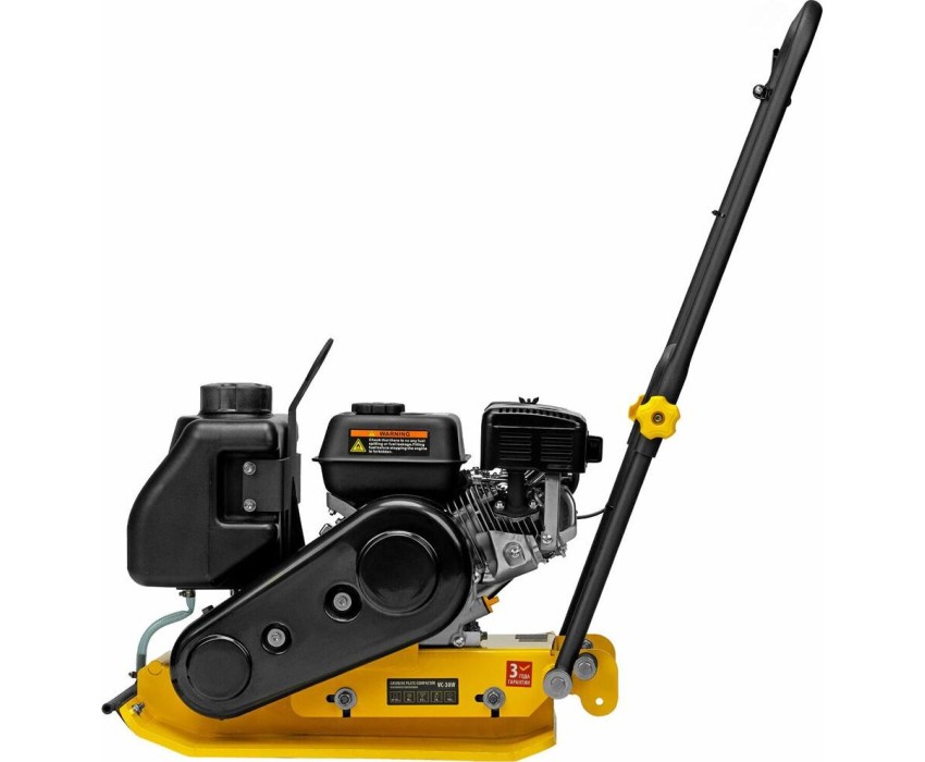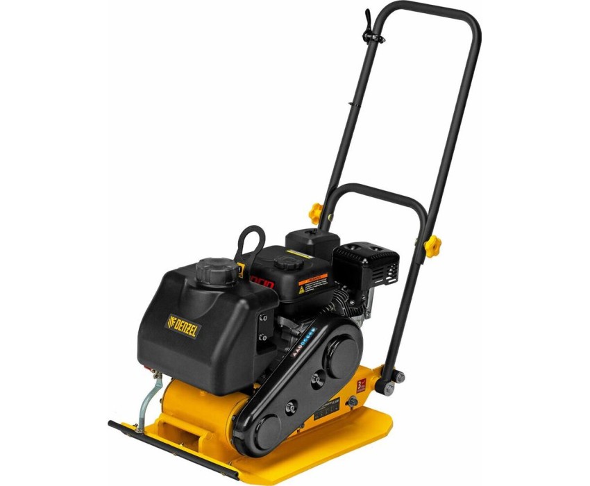Виброплита бензиновая Denzel VC-30W 97042 с основанием размером 60 х 45 см, оснащена двигателем объемом 196 см3, баком для воды, и воздействует на поверхность с центробежной силой 30 кН. Применяется для уплотнения грунта, асфальта, щебеночного покрытия и других материалов. Ровная рабочая поверхность обеспечивает высокое качество выполняемых работ. Виброплита может использоваться на строительной площадке и при проведении дорожного ремонта.ПреимуществаУдобная работа с горячим асфальтом и липкими смесями — на виброплите установлен бак для воды, орошение уплотняемого покрытия предотвращает его налипание на основание плиты.Надежность — мощный и экономичный двигатель LONCIN обеспечивает стабильную работу в течение длительного времени.Удобное управление — рычаг газа расположен на верхней части рабочей рукоятки.Экономичность — полностью заправленного бака хватит на 2 часа работы.Безопасная эксплуатация — приводной ремень закрыт защитным кожухом.Защита от загрязнения — воздушный и топливный фильтры предотвращают попадание посторонних частиц в цилиндр двигателя и бак.Комфортное перемещение на новый участок — производитель предусмотрел подъемную скобу и возможность установки транспортировочных колес (арт. 98024, в комплект поставки не входят).Удобное хранение — благодаря складной рукоятке виброплита не занимает много места.Гарантия 3 года — надежность техники подтверждена производителем.