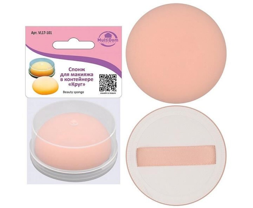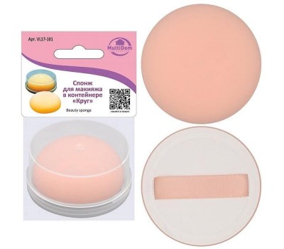 MULTIDOM Спонж для макияжа в контейнере "Круг". Размер: спонж-5,5х1см, контейнер–6,5х2,5см. VL17-101