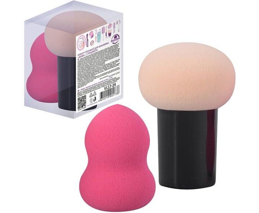 MULTIDOM Набор спонжей для макияжа "Фифа". 2 предмета. Размер спонж 3,5х3,5х4,5 см. VL17-24