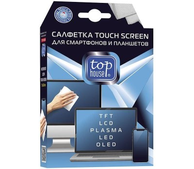 TOP HOUSE Салфетка TOUCH SCREEN, 15X20 см. Нетканая безворсовая салфетка из микрофибры TOP HOUSE TOUCH SCREEN для смартфонов и планшетов специально разработана и произведена в Германии по новейшей технологии с учетом рекомендаций крупнейших производителей цифровых устройств. Изготовлена из материала последнего поколения MICROFIBERS TECHNOLOGY. Сверхтонкие волокна салфетки эффективно обрабатывают микропоры очищаемой поверхности, благодаря чему легко и быстро удаляются любые загрязнения. Очищает от жира, пыли, следов от пальцев, никотиновой пленки. Снимает статическое электричество с экрана.