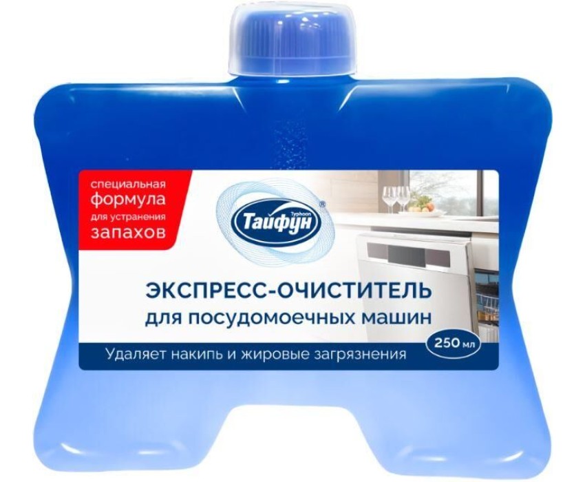 ТАЙФУН Экспресс-очиститель для посудомоечных машин полностью удаляет жировые загрязнения, накипь, очищает форсунки разбрызгивателей и сливные шланги, избавляет от неприятных запахов. Посуда станет чище, а машина прослужит дольше.